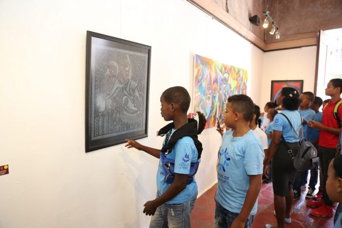 Unos cien niños y adolescentes del programa Ángeles de la Cultura visitaron la exposición de pintura “Fazcara”, del pintor chileno Geraldo Patricio González, conocido artísticamente como “Pato”, en Casa de Teatro.
