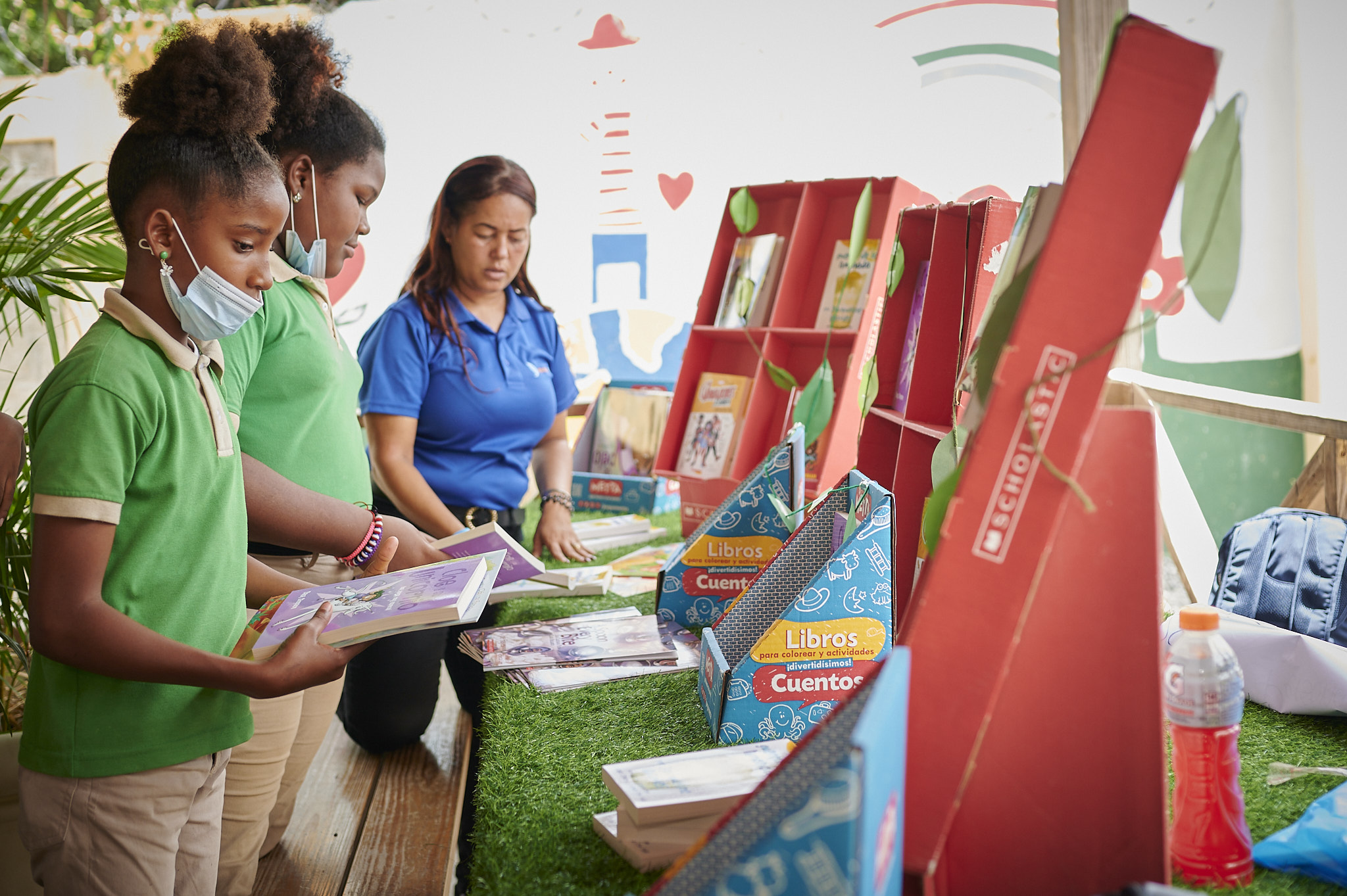 La primera estación consistió en una sesión de cuentacuentos sobre medio ambiente para concienciar sobre el cuidado del entorno, mientras se fomenta en los estudiantes la lectura comprensiva. En esta primera actividad, cada niño recibió la donación de un kit de libros.