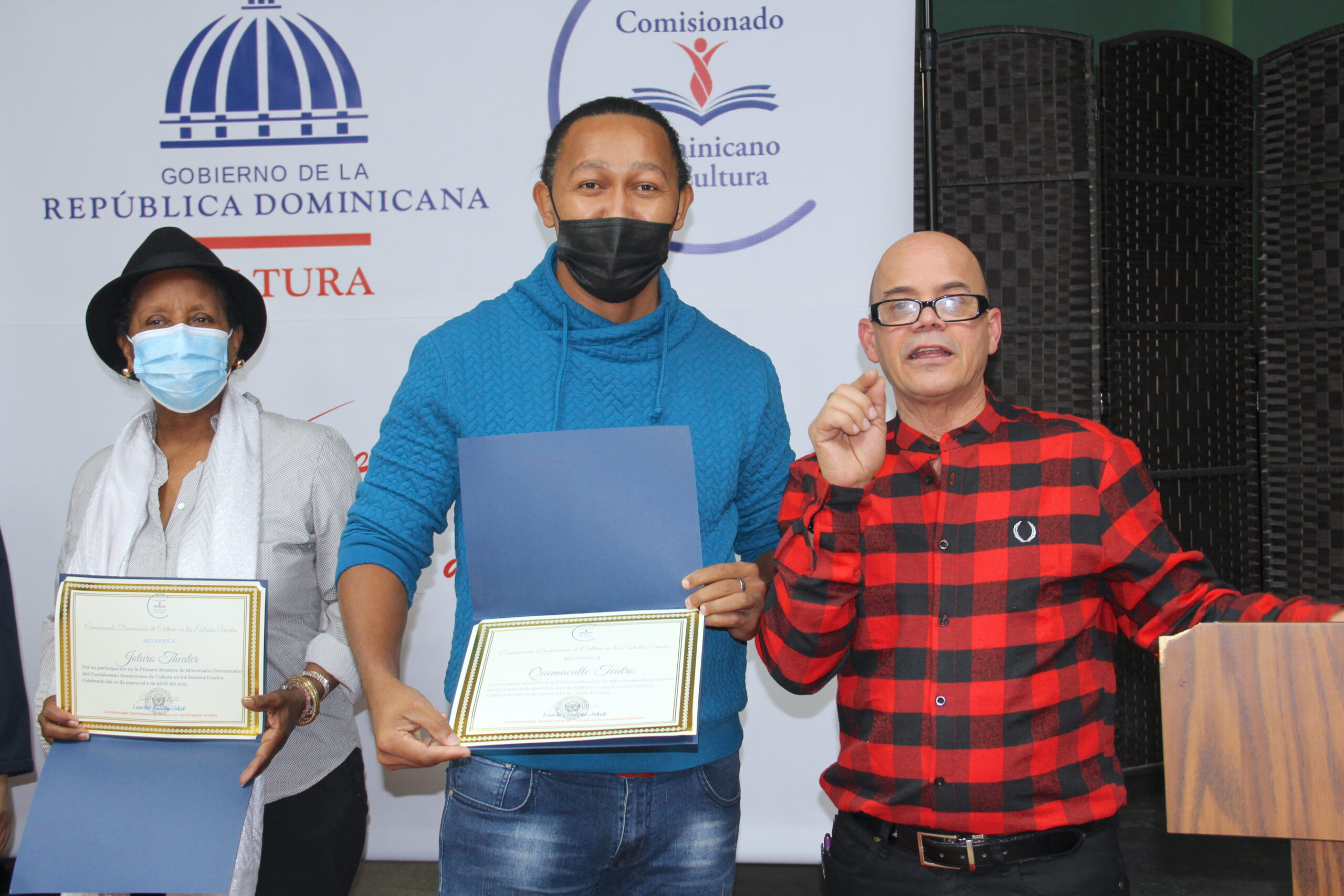 Durante el acto se hizo entrega de un certificado de reconocimiento a las 17 compañías teatrales participantes en la Primera Muestra de Microteatro Dominicano organizada por el departamento de teatro de la sede cultural.