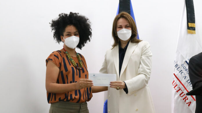 El Ministerio de Cultura hizo entrega de los cheques correspondientes a los ganadores de la 29.ª Bienal Nacional de Artes Visuales 2021, en un acto encabezado por la ministra de Cultura, Milagros Germán, en el auditorio del Museo de Arte Moderno (MAM).