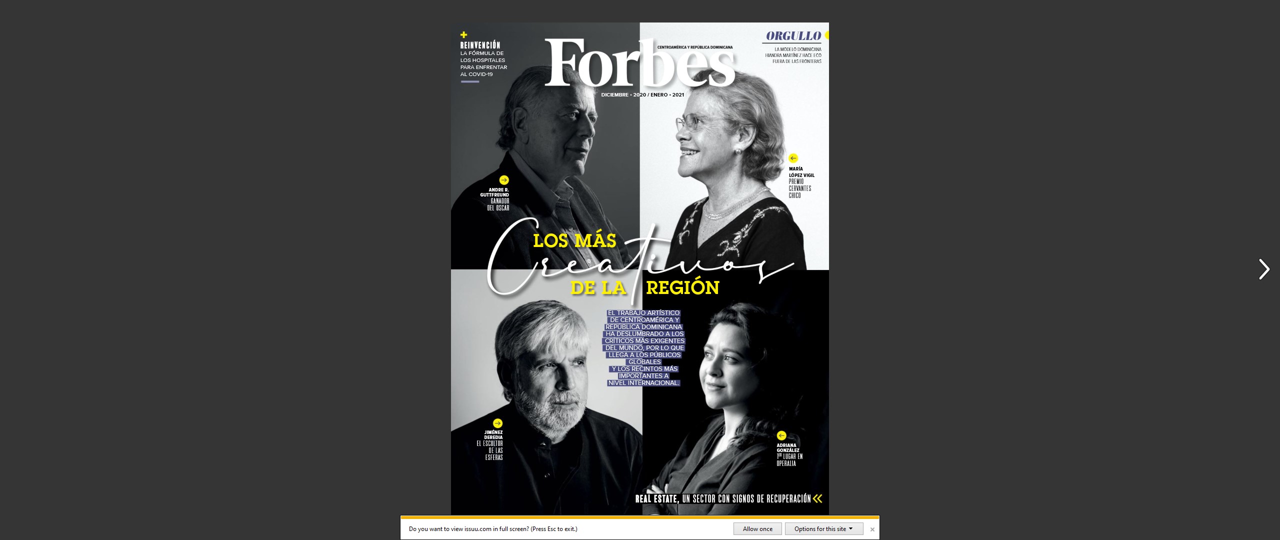 La versión digital de la revista Forbes diciembre 2020/enero2021 puede consultarse en la siguiente dirección: https://issuu.com/forbeslatam/docs/forbes_ca_dic_2020