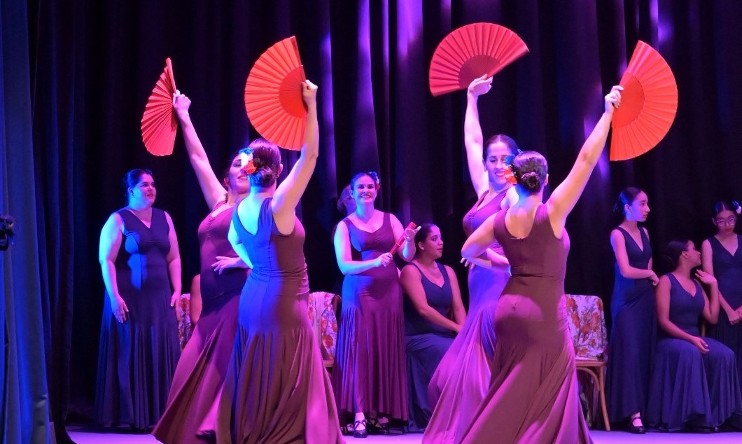 Más de 40 bailaoras estuvieron en escena mostrando los avances en la ejecución de la danza española aprendido durante el año 2023 y los primeros 5 meses del 2024, explicó la maestra Leslie Ricardo.