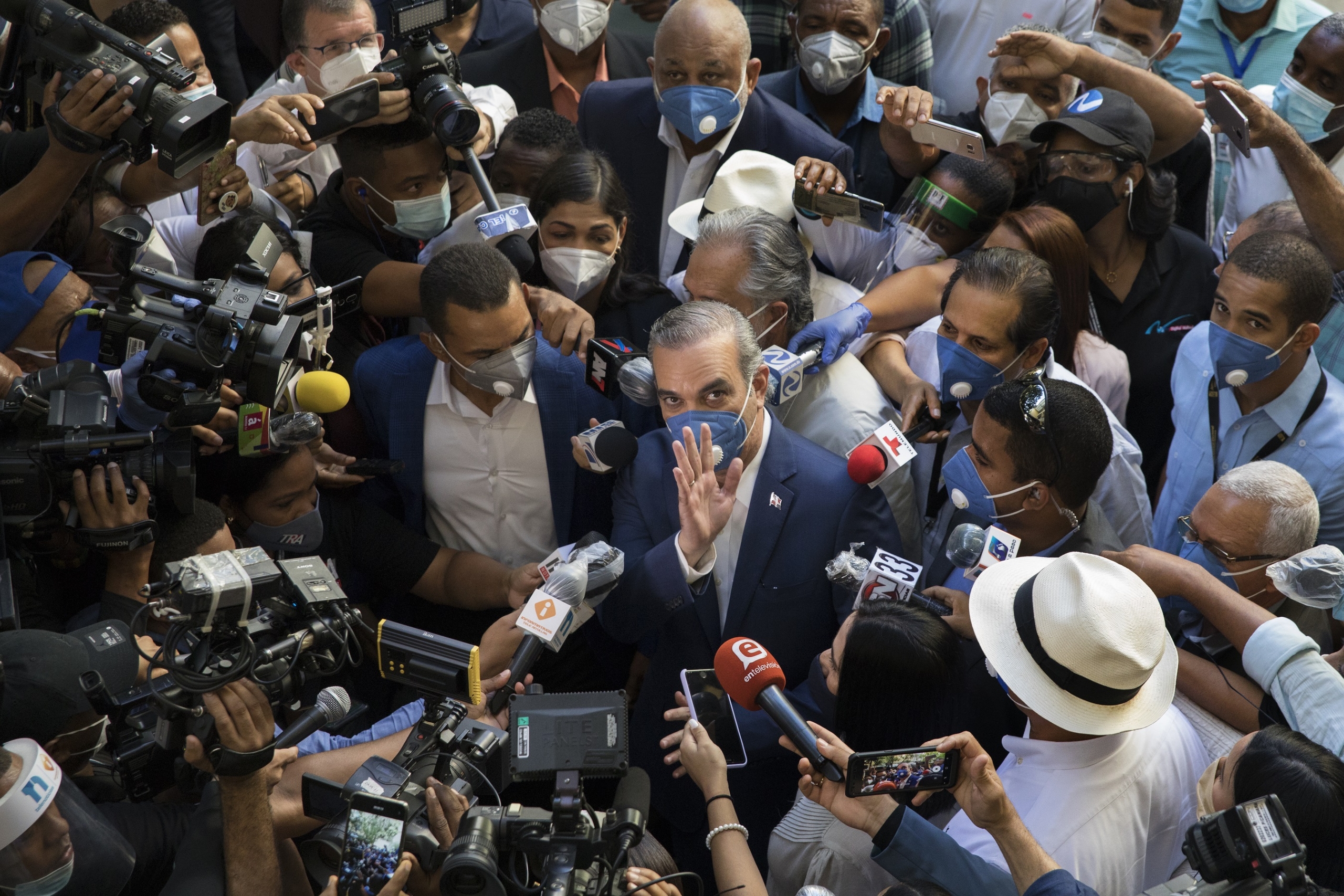 El primer lugar lo obtuvo la fotorreportera Tatiana Fernández, servida por la agencia de noticias Associated Press (AP). La fotografía captó el momento cuando Luis Abinader cuando Luis Abinader, fue abordado por los medios de comunicación tras su elección como ganador de los pasados comicios electorales.