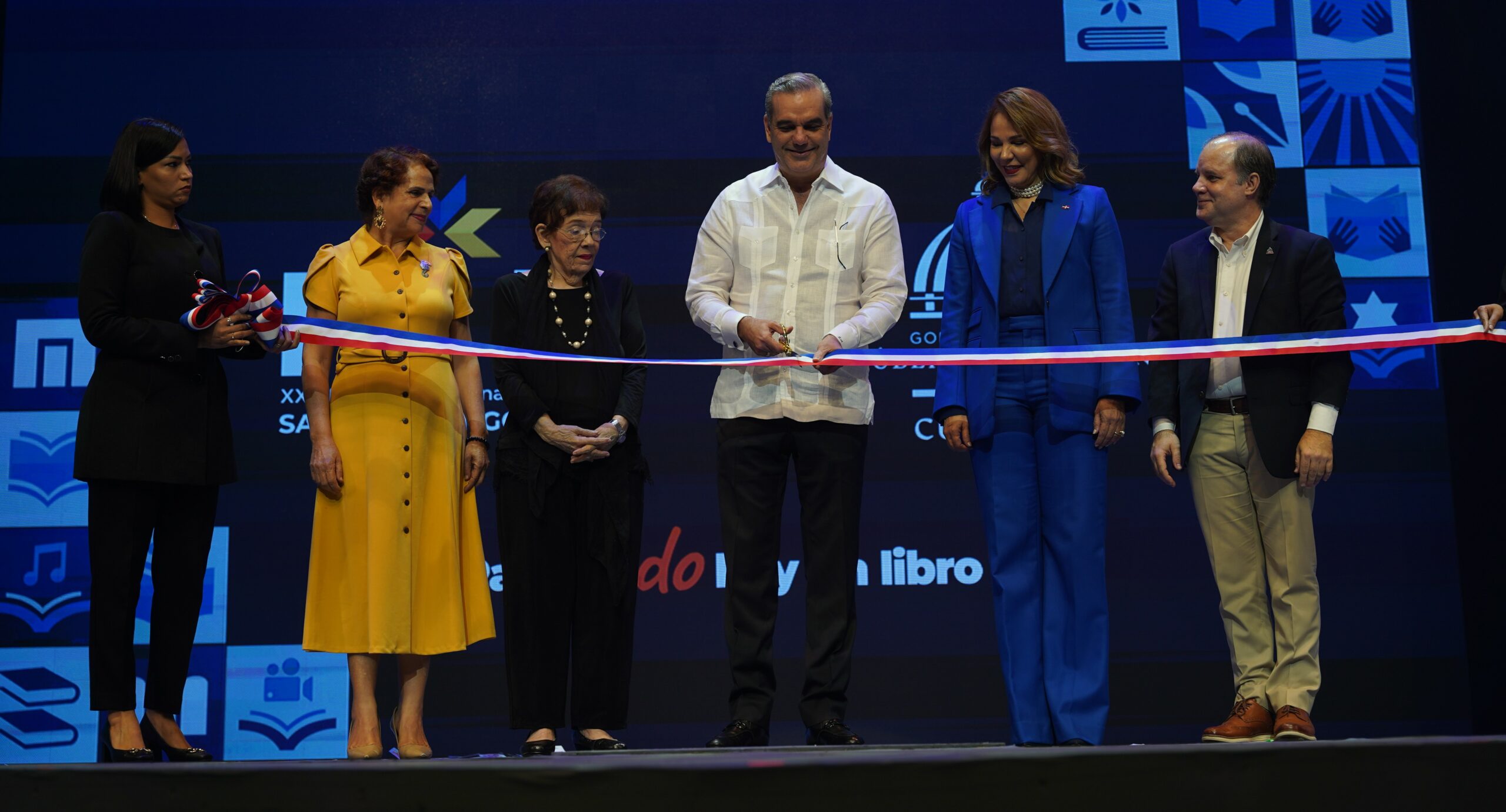 Luego, Abinader junto a la ministra de Cultura, Milagros Germán; la directora general del Libro y la Lectura, Ángela Hernández; el director de las Ferias del Libro, Joan Ferrer, y la escritora homenajeada, Jeannette Miller, cortaron la cinta para dar inicio formal a 10 días llenos de novedades en los que la literatura y la tecnología se abrazan en un maravilloso espectáculo que tiene al libro como protagonista.