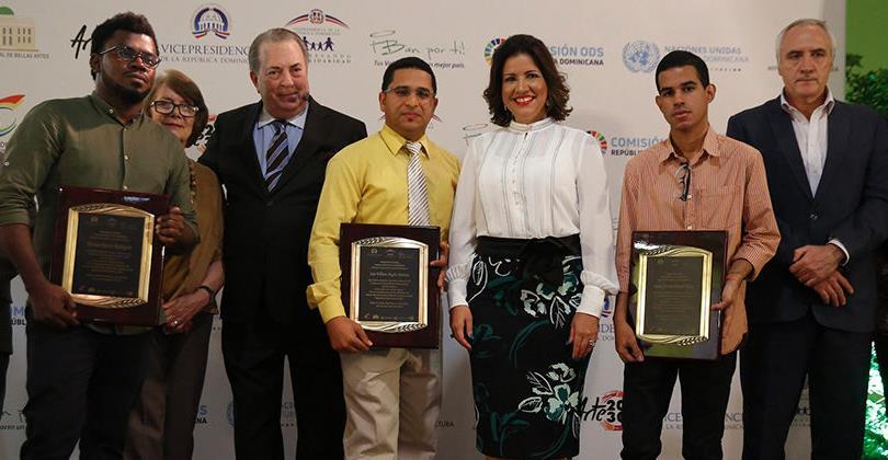 En la premiación acompañaron a la Vicemandataria, Eduardo Selman, ministro de Cultura; Altagracia Suriel, directora de Prosoli; y Marianne de Tolentino, directora de la Galería Nacional de Bellas Artes.